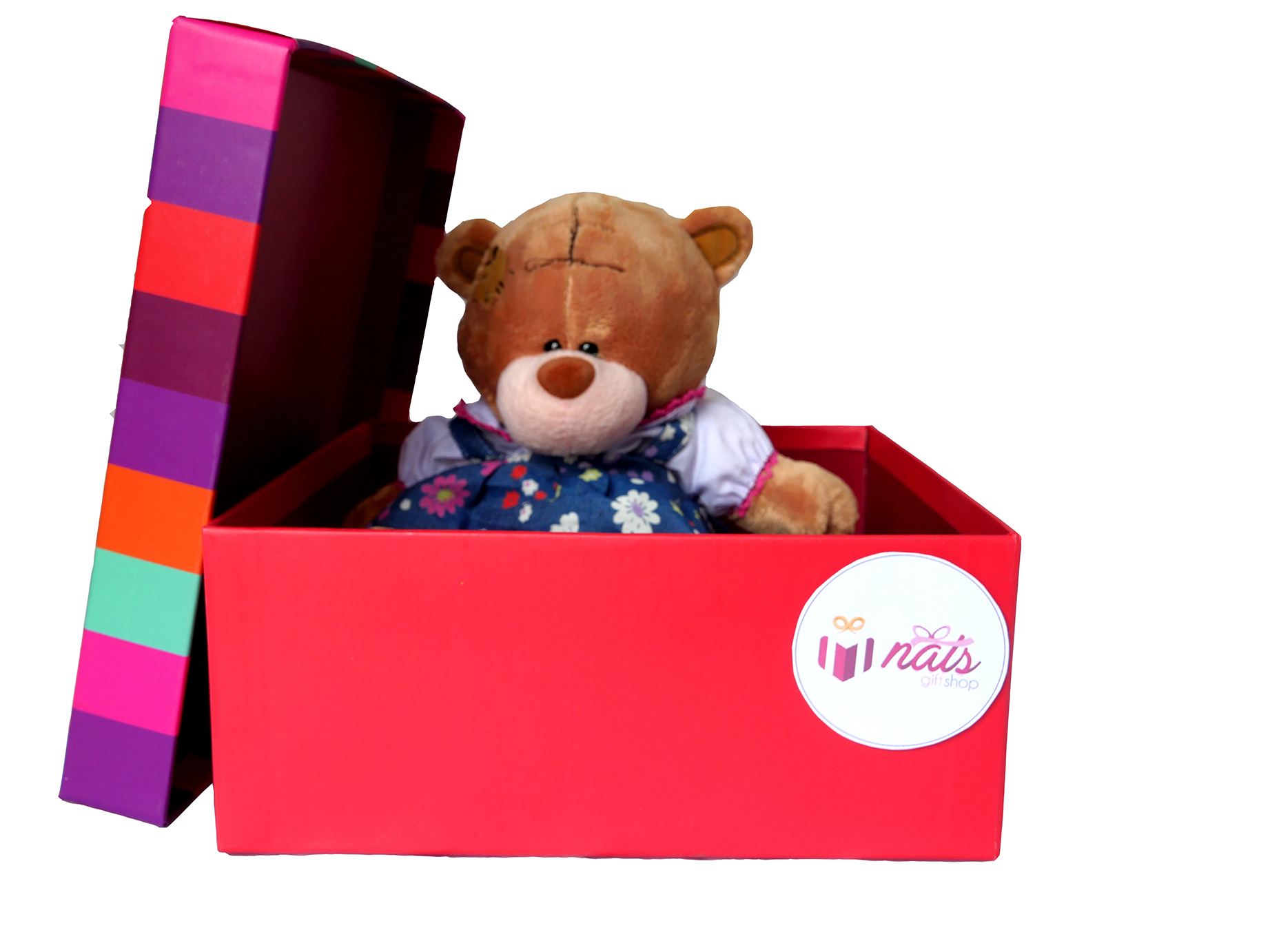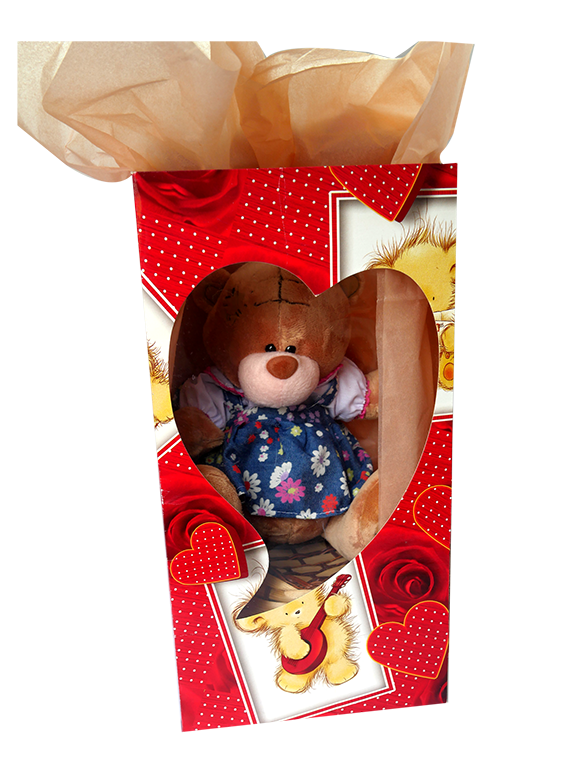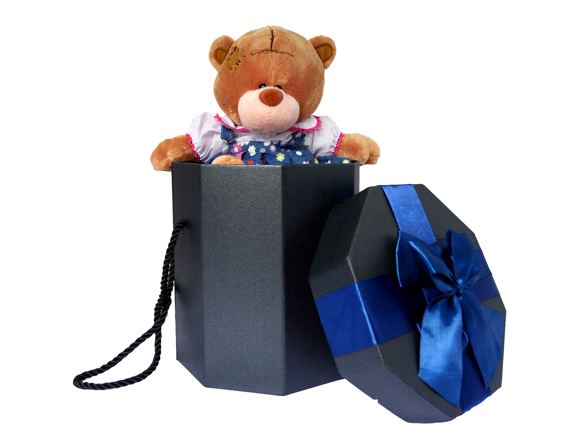 Box con AmorCaja deluxe de forma exagonal con forro de tela azul y lazo satinado, y un amoroso Oso con un mensaje de amor. un bello detalle para regalar. Detalles* Caja de forma exagonal forrada. * Oso de peluche con mensaje amoroso.